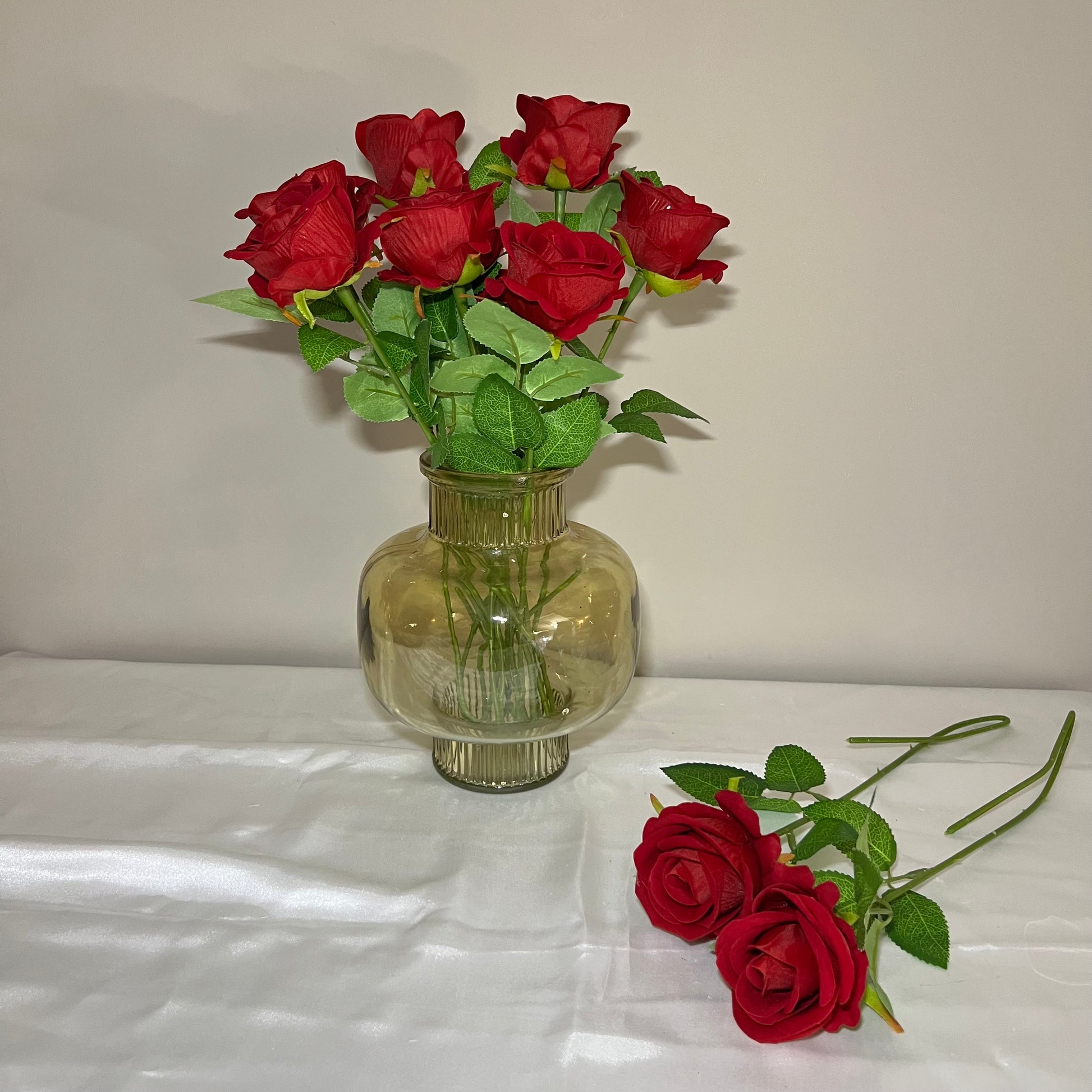 Voeg een vleugje liefde en luxe toe aan je interieur met deze kunstmatige rode roos. De levensechte details en diepe rode kleur maken deze bloem perfect voor romantische decoraties, boeketten of als tijdloos accent in een vaas. Onderhoudsvrij en altijd prachtig!